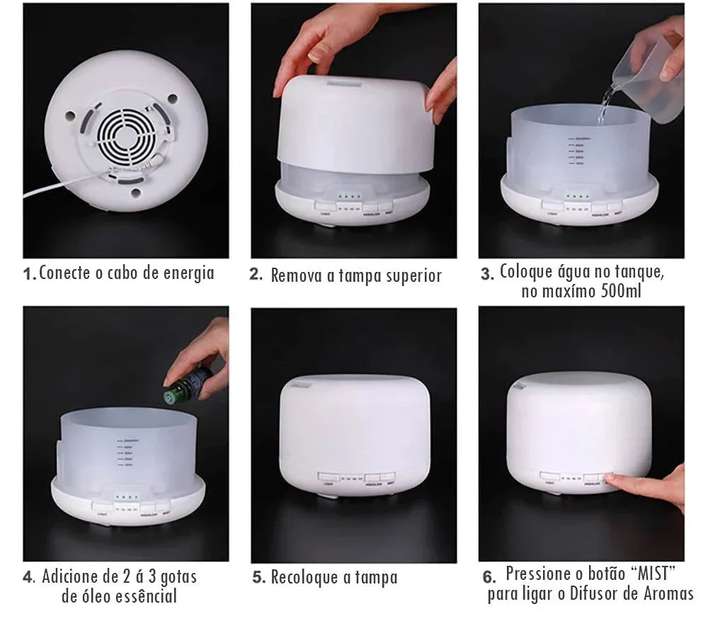 - Aromaterapia Completa: Desfrute dos benefícios dos óleos essenciais, aliviando o estresse, reduzindo dores, melhorando o sono e muito mais.